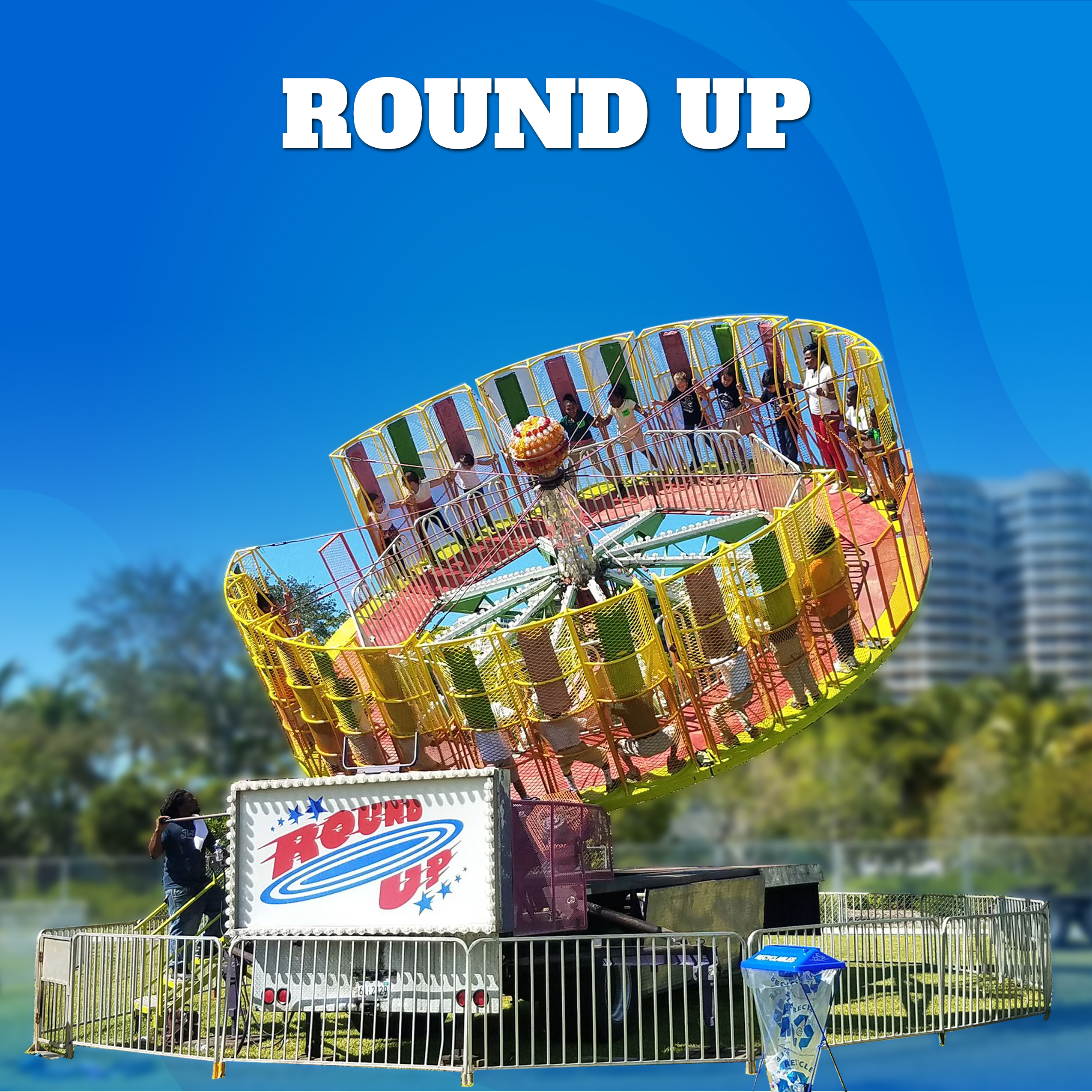 Get lifted and spun into excitement on the Round Up! This gravity-powered thrill ride presses you to the wall as you spin like never before ️ — a carnival favorite that’s as safe as it is fun!