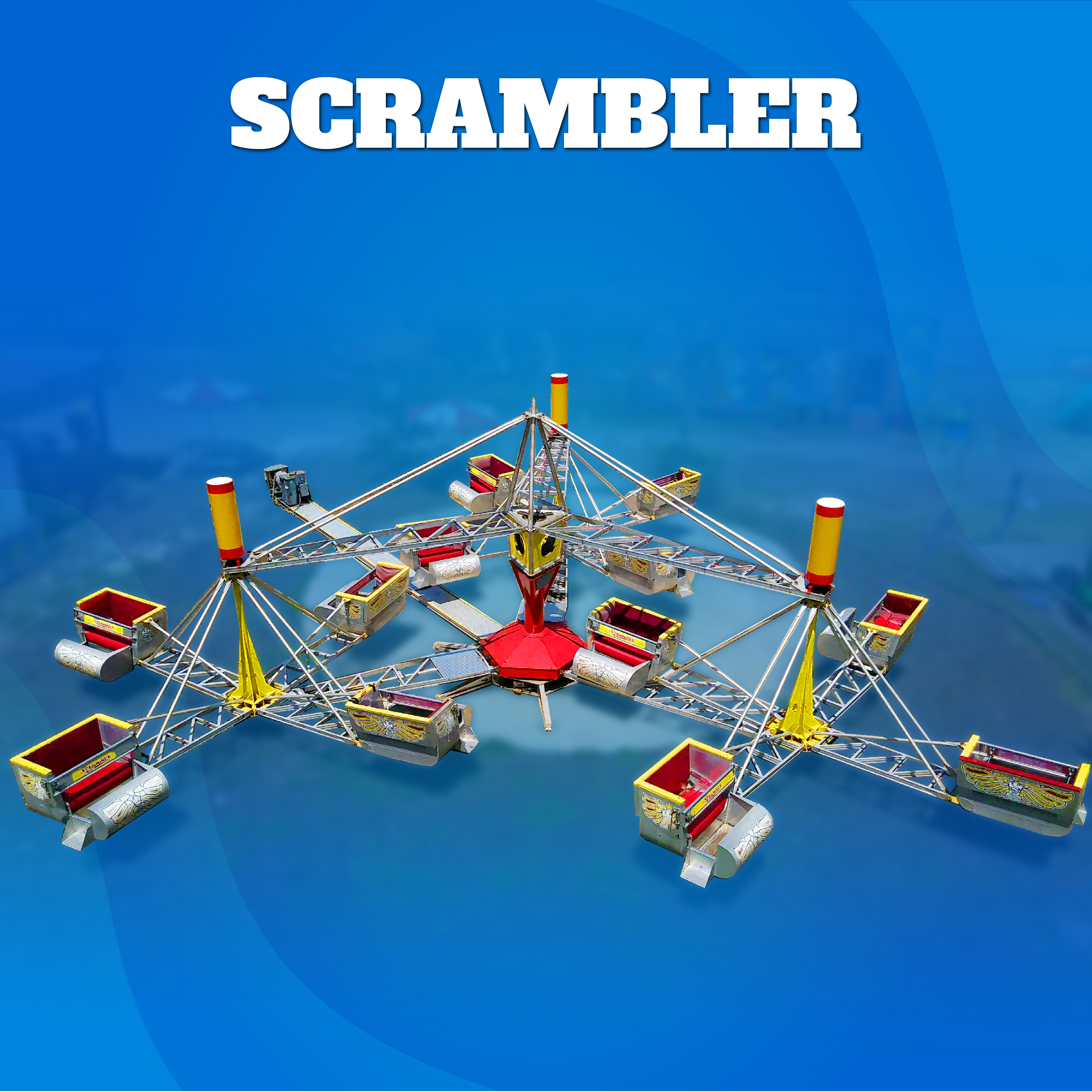 Get ready to twist, turn, and laugh out loud! The Scrambler whirls riders around in a wild, spinning dance of fun — perfect for thrill seekers of all ages. Buckle up for some serious spinning action!